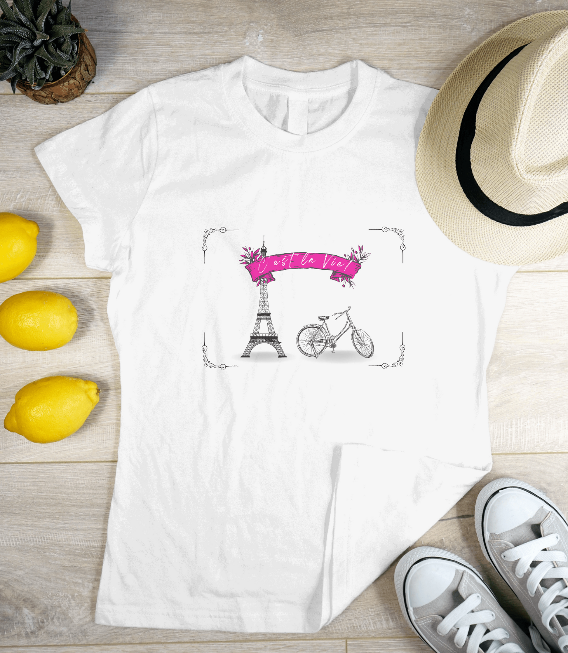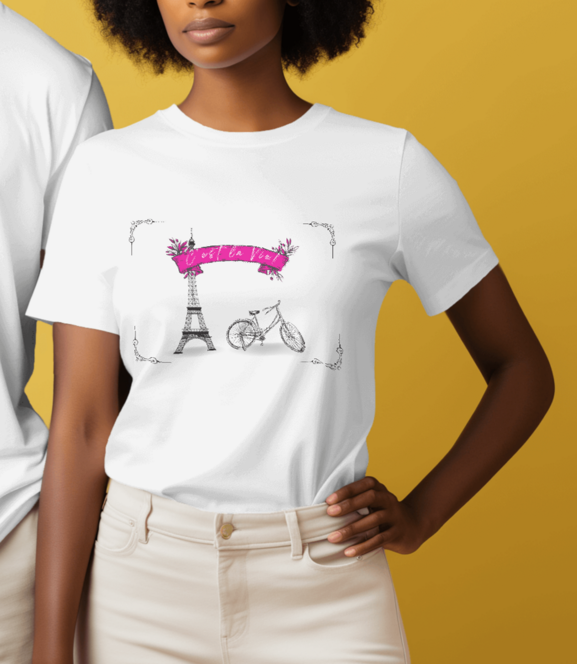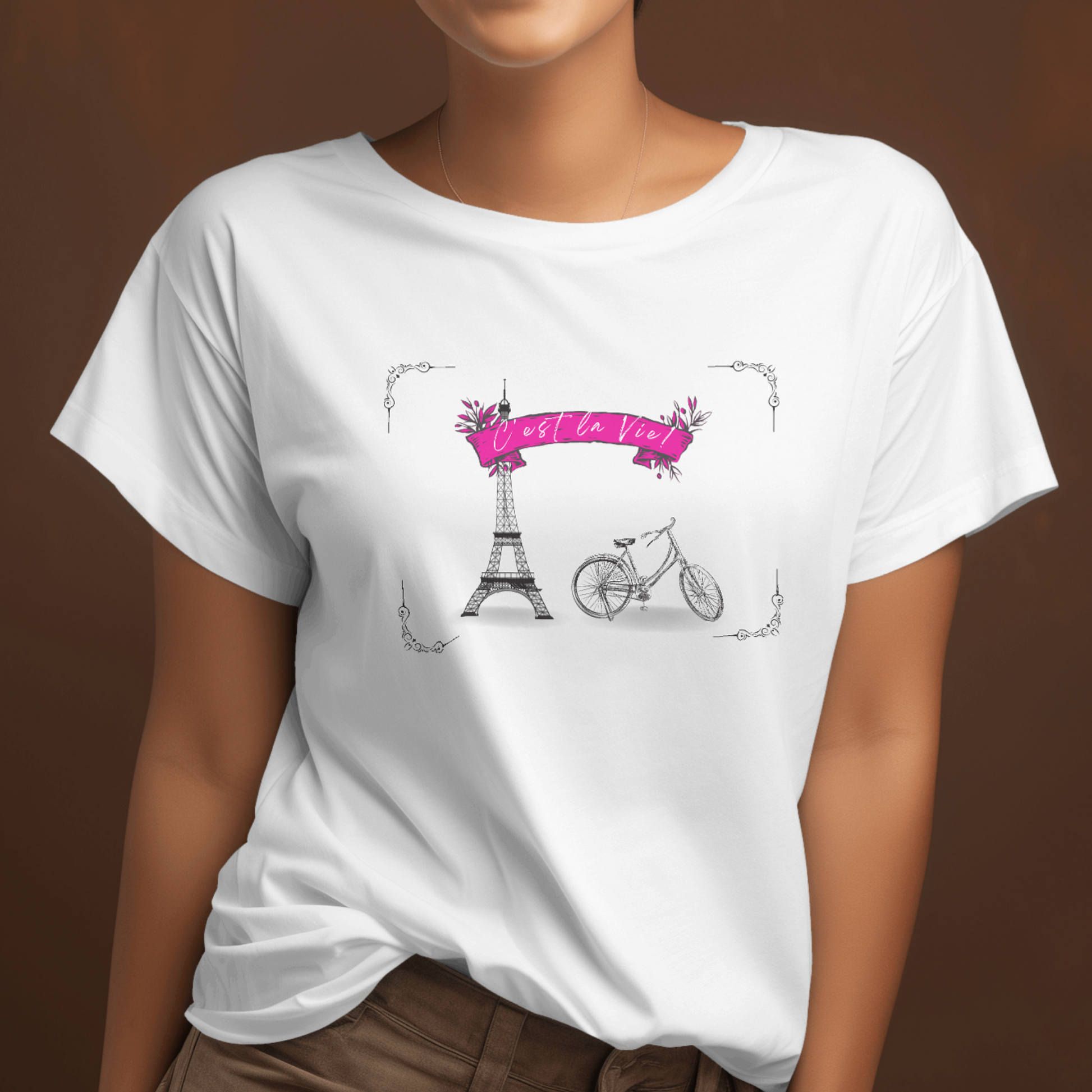 This Bicycle C'est la Vie Tshirt is a must-have for any cycling enthusiast. Made with high-quality materials and a stylish design, it is comfortable to wear and shows off your love for biking. With its versatile fit and durable construction, it's perfect for both casual rides and intense training sessions. Upgrade your cycling wardrobe with this trendy and functional tshirt.